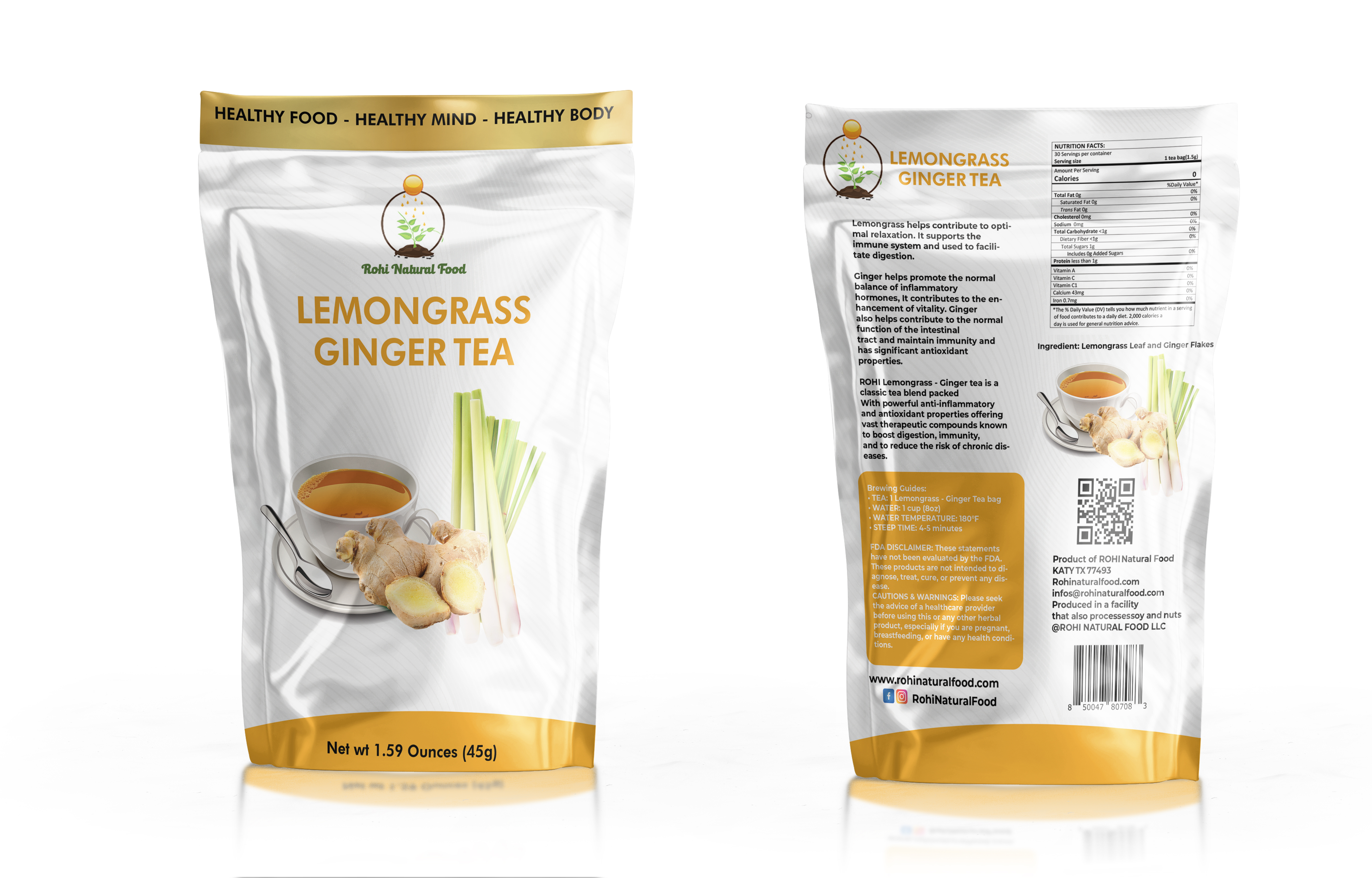 ROHI Lemongrass - Ginger tea is a classic tea blend packed with powerful anti-inflammatory and antioxidant properties offering vast therapeutic compounds known to boost digestion, immunity, and to reduce the risk of chronic diseases.