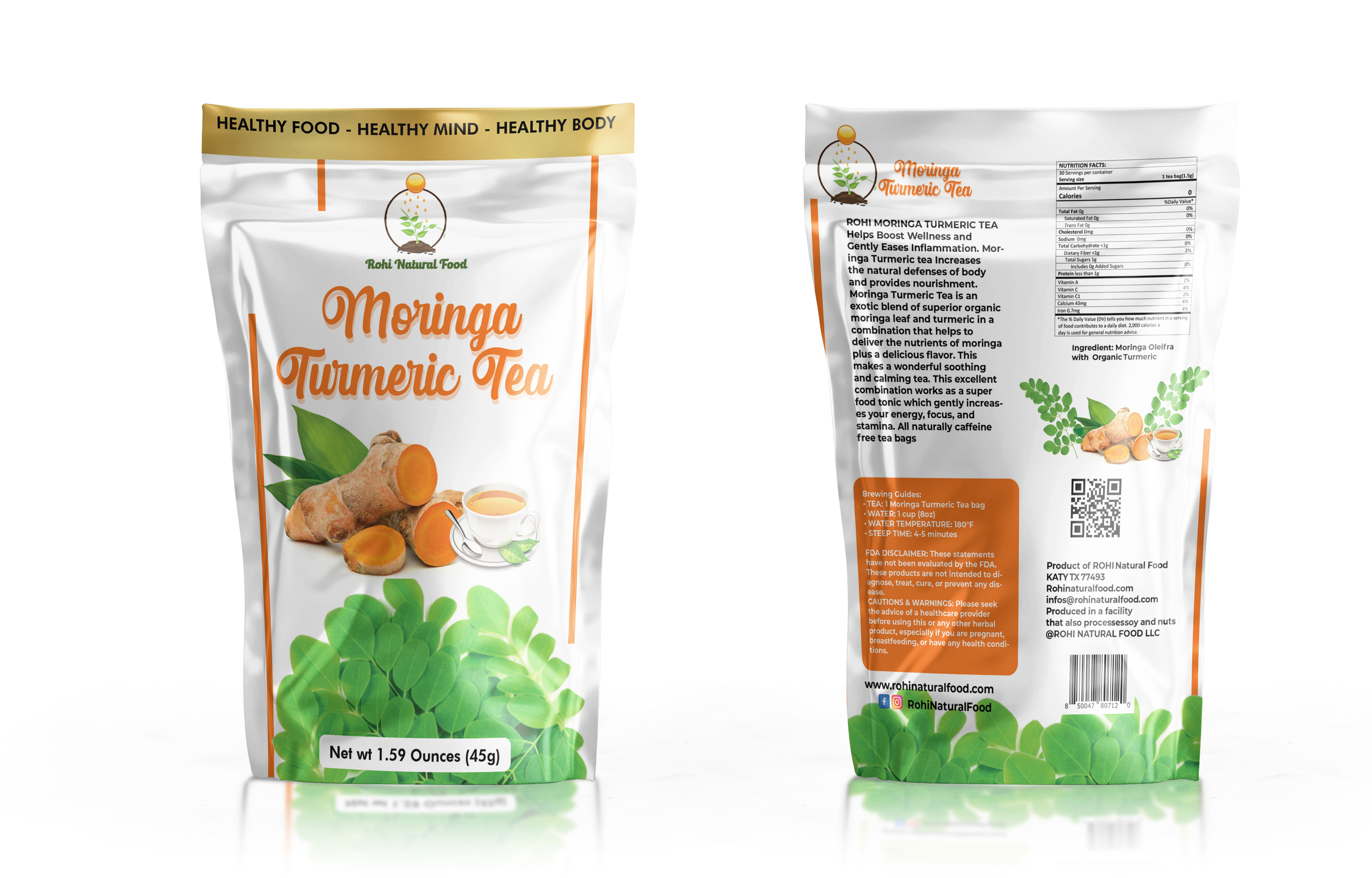 ROHI MORINGA TURMERIC TEA Helps Boost Wellness and gently Eases Inflammation. Moringa Turmeric tea increases
